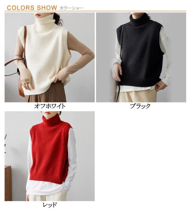 送料無料 ハイネック ニットベスト ニット ベスト タートルネック ノースリーブ ニット トップス レディース リブニット 袖なし セーター 重ね着 ニットセーター ニットタンクトップ ショート丈 レイヤード プルオーバー