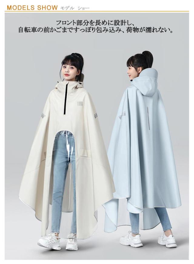 | フロントカゴまですっぽりカバー 透明フィルム付きでライトもミラーも遮らない フロント部分を長めに設計し、自転車の前かごまですっぽり包み込み、荷物が濡れない。 透明フィルムドッキングで、スクーターやバイクのフロントライトやバックミラーもカバーしてくれ、良好な視界を確保してくれ、雨の日や夜間の走行も安全・安心です。 フロント透明フィルム仕様で、ダッシュボードがよく見えるから、バイクや電動スクーターを運転していても、ダッシュボード上のデータがよく見えます。 耐摩耗性・耐久性抜群の300DオックスフォードにPVCコーティングで、防水性・撥水性に優れ、豪雨も安心です。 大きなポンチョタイプで、頭から全身すっぽり収まり、雨を完全にシャットアウトします。 フロントも後ろも固定用ゴムバンド付きで、風によるすそ舞い上がるのを防止し、安全な走行を確保してくれます。 フード後ろにマジックテープ付きで、頭型や快適さを考慮して、微調整可能!フードが頭にしっかりフィットし、風雨から守ってくれます。 通勤や通学、保育園、幼稚園の送迎、防災用、スポーツ観戦、お散歩、自転車用、アウトドア、釣り、作業、登山、ゴルフ、除雪作業などの様々な場合に適用しています。春夏秋冬、一年間にご使用いただけるレインコートです。 | |