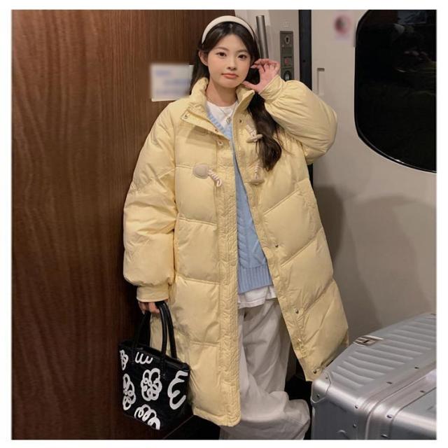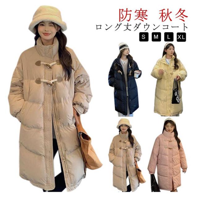 ロングコート レディース ダウンジャケット ロング丈 ダウンコート 着痩せ ゆったり ベンチコート 中綿ダウン 中綿コート 中綿ジャケット ダッフルコート 牛角ボタン 学生 女子 秋冬 防寒 防風 軽量 厚手 韓国風 可愛い おしゃれ 通学 通勤