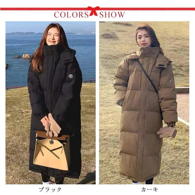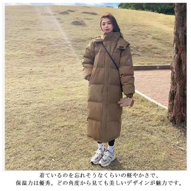 超ロング ベンチコート ロングコート レディース ダウンコート ダウンジャケット 中綿コート 中綿入り アウター 立ち襟 スタンドカラー ボリューム 膝下 着痩せ 撥水 厚手 軽量 防寒 防風 あったか 保温 おしゃれ 秋冬 冬 通勤 通学