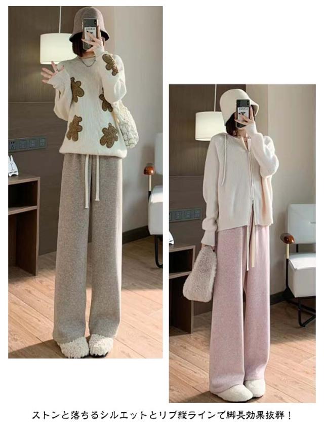 ボトムス 防寒 ウエストゴム ロングパンツ 暖かい 秋 冬 ふんわり柔らかい ワイドパンツ 厚手 リブ カシミヤタッチ レディース 保温 ワイドパンツ 裏起毛 あったか ゆったり 大きいサイズ ストレッチ イージーワイドパンツ カジュアル 可愛い 体型カバー