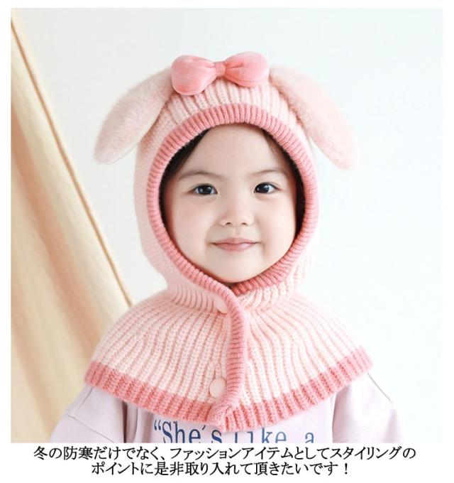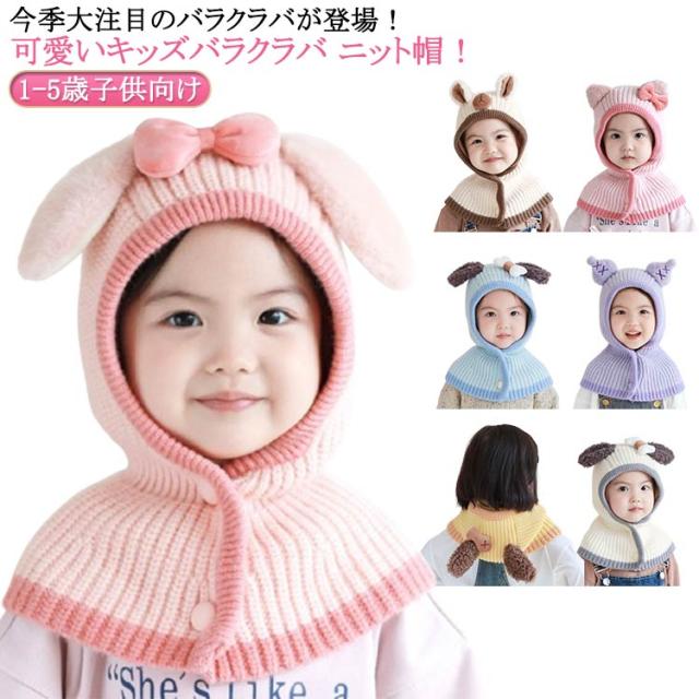 バラクラバ キッズ 耳付き ウサギ うさぎ耳 兎 女の子 男の子 1-5歳子供向け バラクラバ ニット帽 ニット スヌード マフラー ハット ニットキャップ 熊 犬 韓国 ファッション フーディー 付けフード キッズ アウトドア 防風 フードウォーマー フード付き