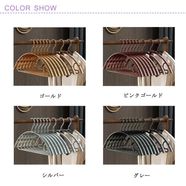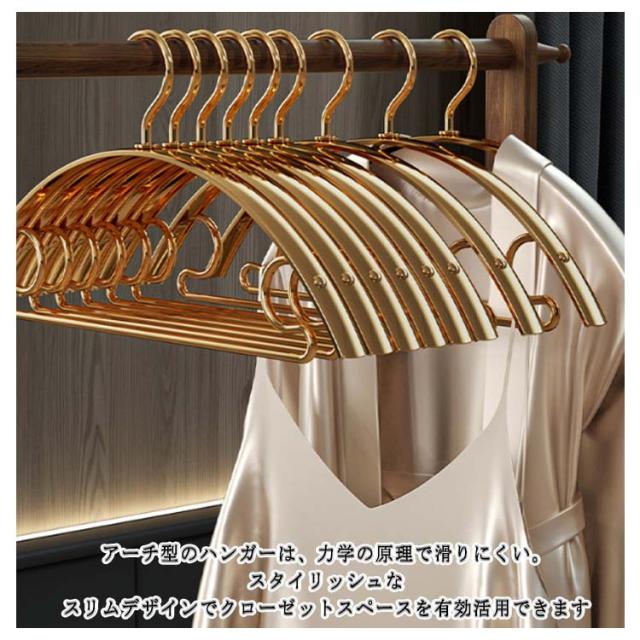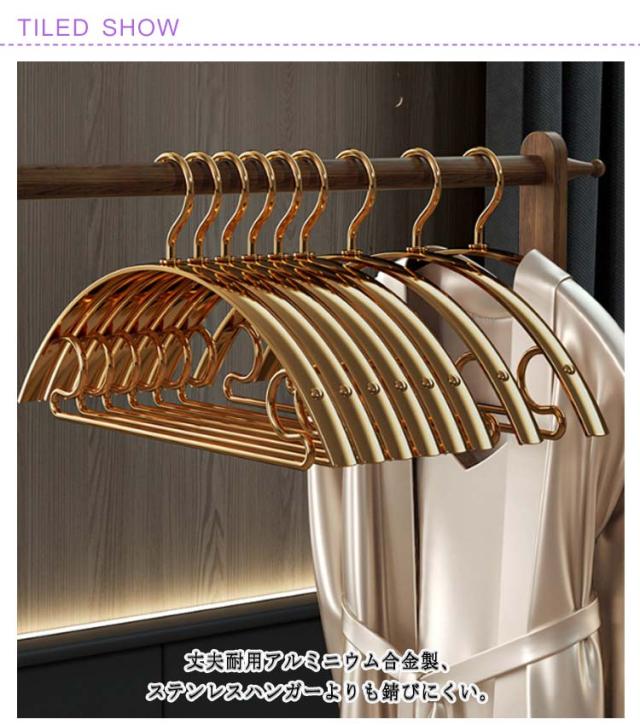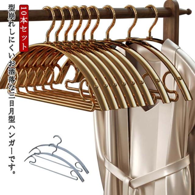 | 型崩れしにくいお洒落な三日月型ハンガーです。 丈夫耐用アルミニウム合金製、ステンレスハンガーよりも錆びにくい。 肩の跡がつきにくく、大切なお洋服を綺麗なスタイルのままキープしてくれます。 アーチ型のハンガーは、力学の原理で滑りにくい。 スタイリッシュなスリムデザインでクローゼットスペースを有効活用できます◎ | |