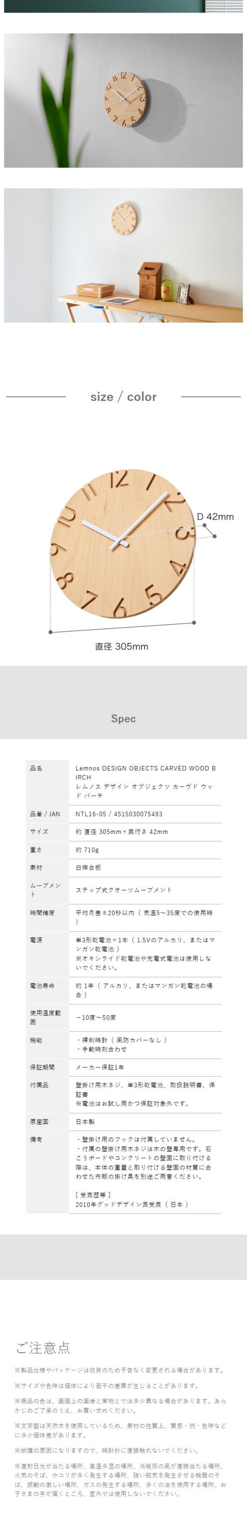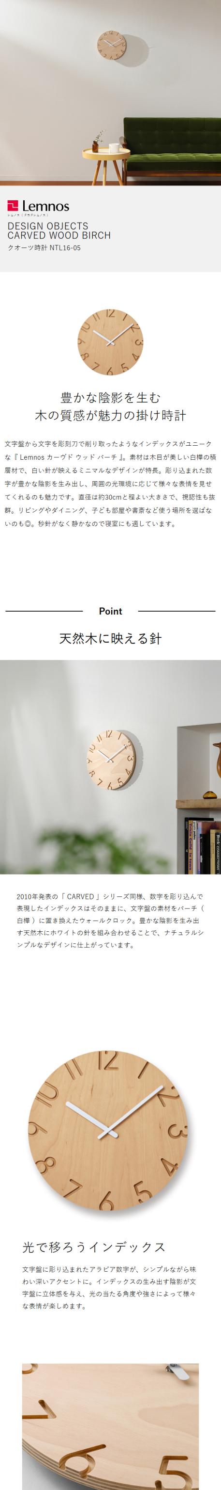 [ Lemnos CARVED WOOD BIRCH ]レムノス 掛け時計 カーヴド ウッド バーチ 壁掛け時計 ウォールクロック 時計 おしゃれ 壁掛け 掛時計 かけ時計 30.5cm 北欧 静音 リビング インテリア タカタレムノス CARVEDシリーズ NTL16-05