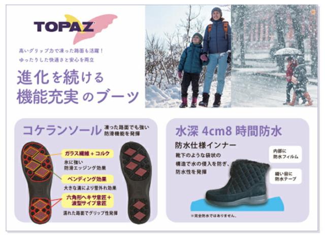【トパーズ TOPAZ】ゆったり楽々でおなじみのトパーズの防水・防寒・防滑ブーツ。