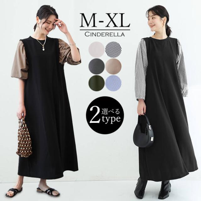 ワンピース レディース カジュアル ロングワンピース ロング丈 同窓会 二次会 食事会 膝下丈 膝下 フェミニン 異素材 ドッキングワンピース パフスリーブ トレンド感 半袖 五分袖 七分袖 長袖 10代 20代 30代 春 きれいめ ロング 体型カバー ゆったり 大きいサイズ