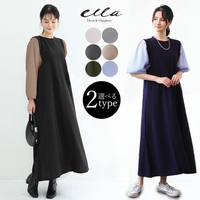ワンピース レディース カジュアル ロングワンピース ロング丈 同窓会 二次会 食事会 膝下丈 膝下 フェミニン 異素材 ドッキングワンピース パフスリーブ トレンド感 半袖 五分袖 七分袖 長袖 10代 20代 30代 春 きれいめ ロング 体型カバー ゆったり 大きいサイズ