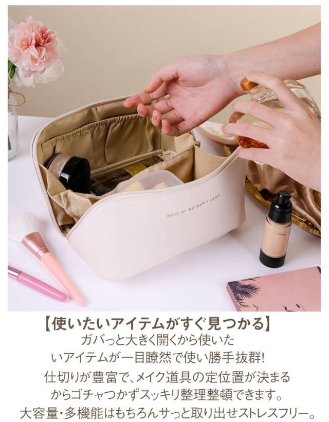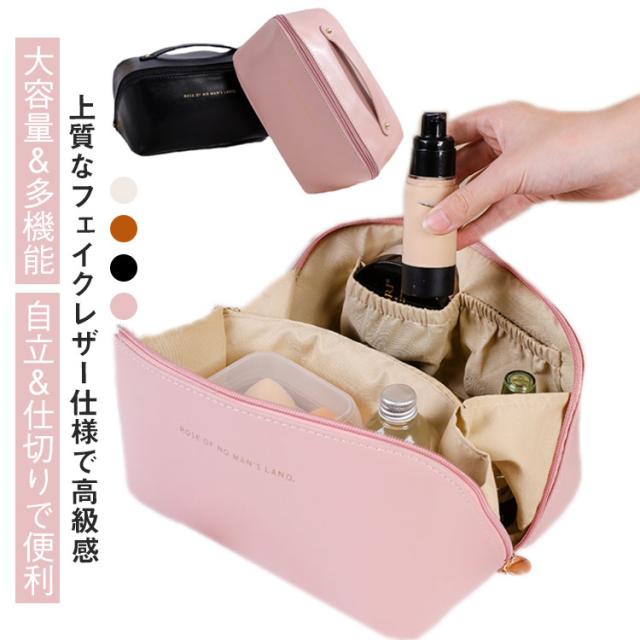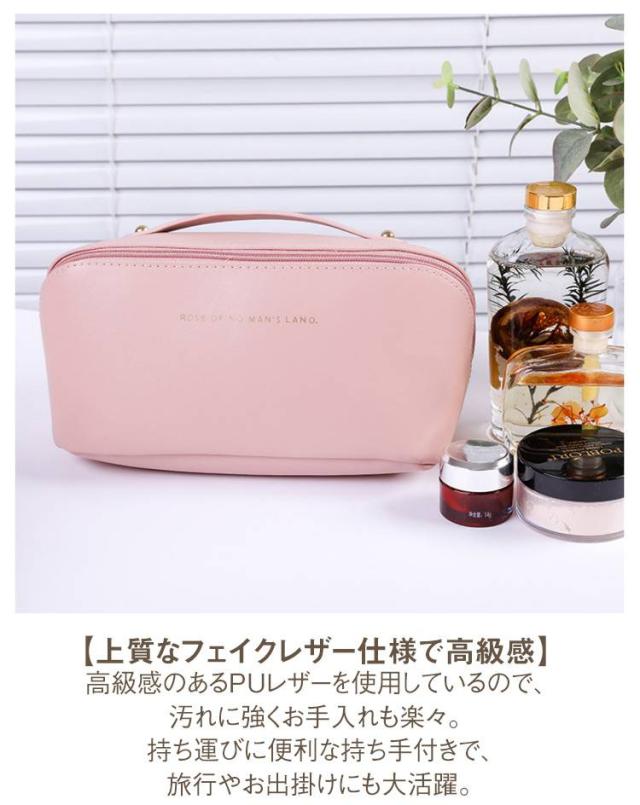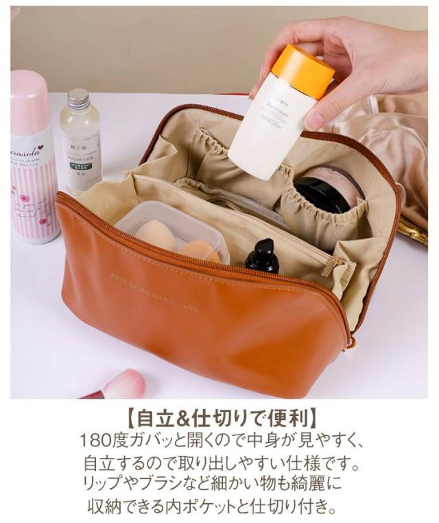 メイクポーチ コスメポーチ 仕切り 化粧ポーチ 小物 ケース かわいい 大容量 大開口 収納 ハンドル付き ポーチ 雑貨 軽量 PU 合皮 旅行 携帯便利 母の日 プレゼント