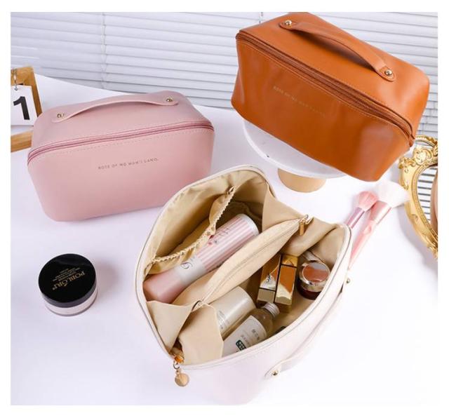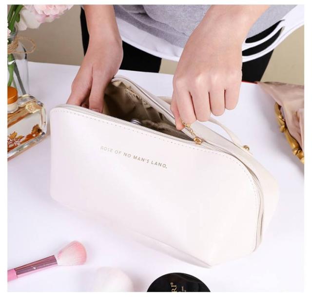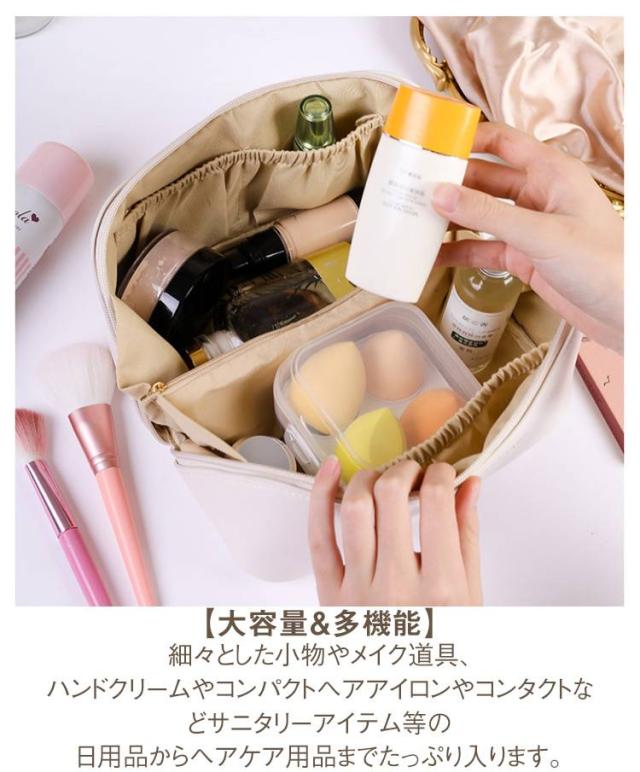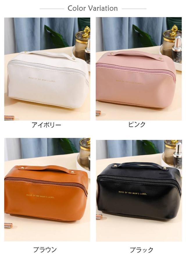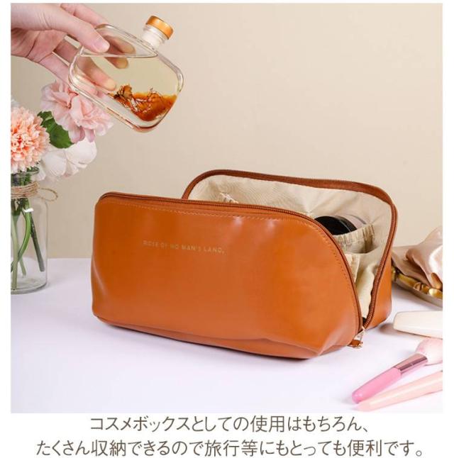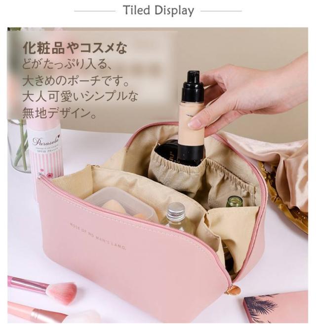 | 化粧品やコスメなどがたっぷり入る、大きめのポーチです。 大人可愛いシンプルな無地デザイン。 【使いたいアイテムがすぐ見つかる】 ガバっと大きく開くから使いたいアイテムが一目瞭然で使い勝手抜群! 仕切りが豊富で、メイク道具の定位置が決まるからゴチャつかずスッキリ整理整頓できます。 大容量・多機能はもちろんサっと取り出せストレスフリー。 【自立&仕切りで便利】 180度ガバッと開くので中身が見やすく、自立するので取り出しやすい仕様です。 リップやブラシなど細かい物も綺麗に収納できる内ポケットと仕切り付き。 【大容量&多機能】 細々とした小物やメイク道具、ハンドクリームやコンパクトヘアアイロンやコンタクトなどサニタリーアイテム等の日用品からヘアケア用品までたっぷり入ります。 コスメボックスとしての使用はもちろん、たくさん収納できるので旅行等にもとっても便利です。 【上質なフェイクレザー仕様で高級感】 高級感のあるPUレザーを使用しているので、汚れに強くお手入れも楽々。 持ち運びに便利な持ち手付きで、旅行やお出掛けにも大活躍。 | |