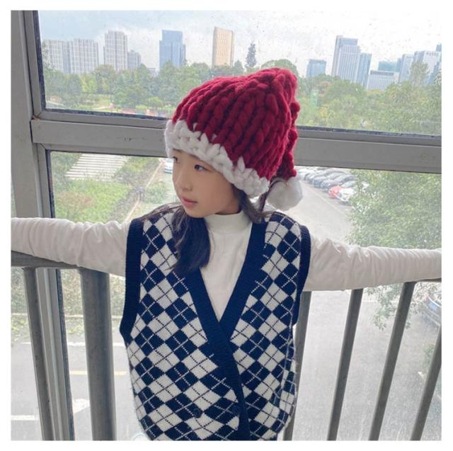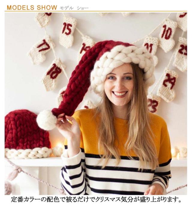 | とんがり帽子の先に丸いポンポンの付いたサンタクロースの定番帽子。 定番カラーの配色で被るだけでクリスマス気分が盛り上がります。 伸縮性があり、ぴったりフィットします。 ざっくり編みの暖かい帽子です。 | |