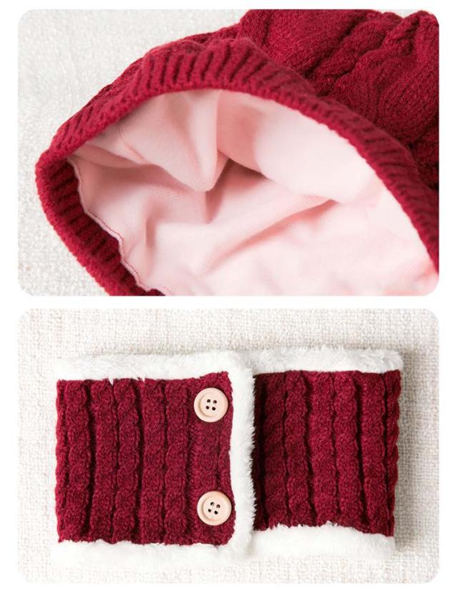 | 猫耳がついている可愛いくまニット帽子&マフラーセット お出掛けの寒さ対策に♪ | |