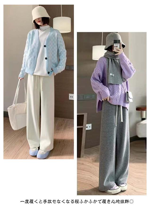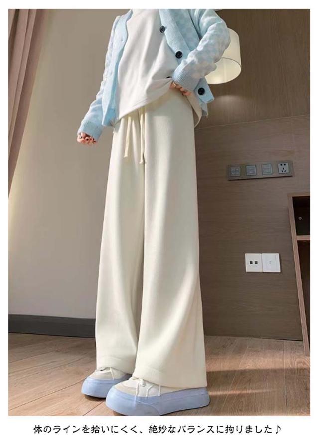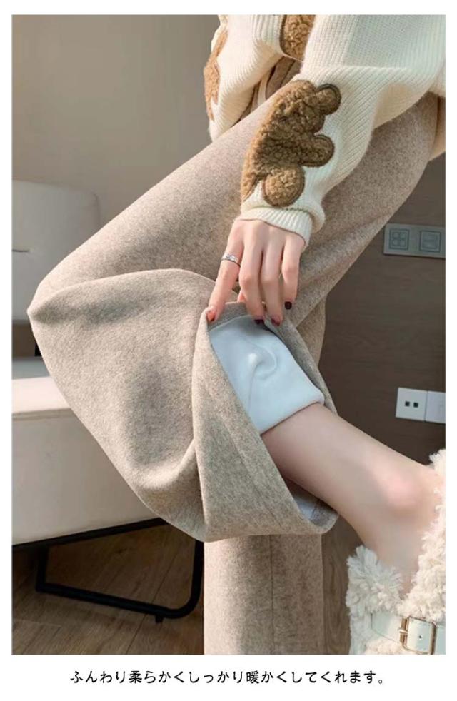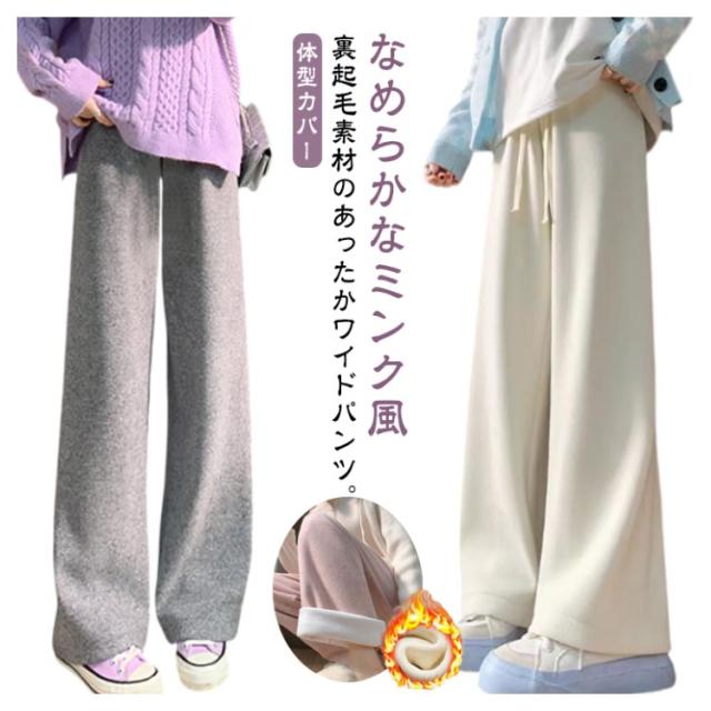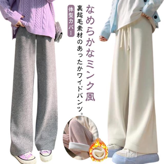 秋 大きいサイズ ふんわり柔らかい 裏起毛 ワイドパンツ カシミヤタッチ 冬 リブ ウエストゴム ロングパンツ ボトムス レディース 防寒 保温 厚手 暖かい あったか ゆったり ワイドパンツ ストレッチ イージーワイドパンツ カジュアル 可愛い 体型カバー