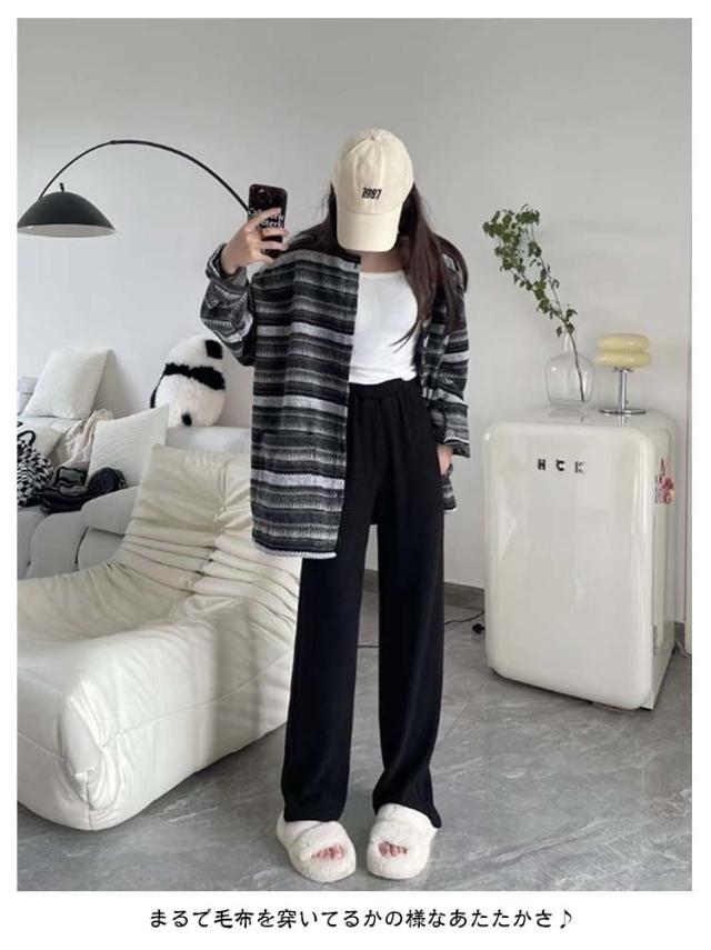 | なめらかなミンク風裏起毛素材のあったかワイドパンツ。 ふんわり柔らかくしっかり暖かくしてくれます。 ストンと落ちるシルエットとリブ縦ラインで脚長効果抜群! ウエストゴムで快適な履き心地。 体のラインを拾いにくく、絶妙なバランスに拘りました♪ まるで毛布を穿いてるかの様なあたたかさ♪ 一度履くと手放せなくなる程ふかふかで履き心地抜群◎ | |