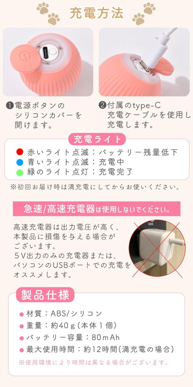 ペット/猫用/電動ボール/充電式/Type-Cケーブル付き/玩具/自動回転/動く/おもちゃ/USB/丸型/回る/LEDライト付き/運動不足/肥満/対策/シリコン/かわいい/ストレス解消/ペット用品/猫じゃらし/留守番/遊び相手/一人遊び/光る/自動走行/訓練/知育玩具/ボウル/電池不要/カラフル/動画映え/丈夫/発光回転ボール/猫おもちゃ/動くボール/ペット玩具/子猫/ねこ/ネコ/ペット用玩具/TN-ELBL/