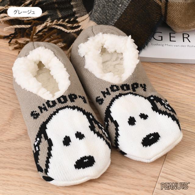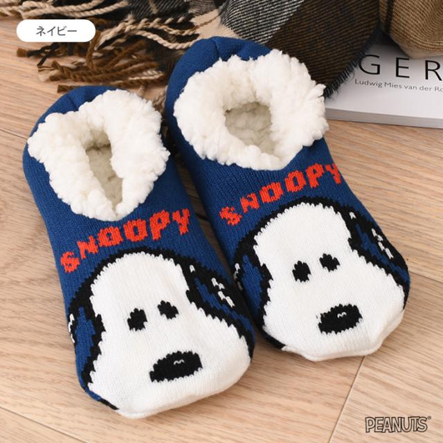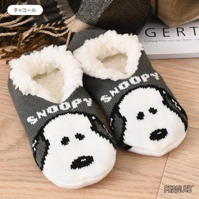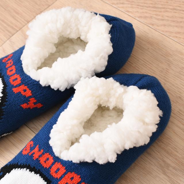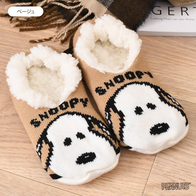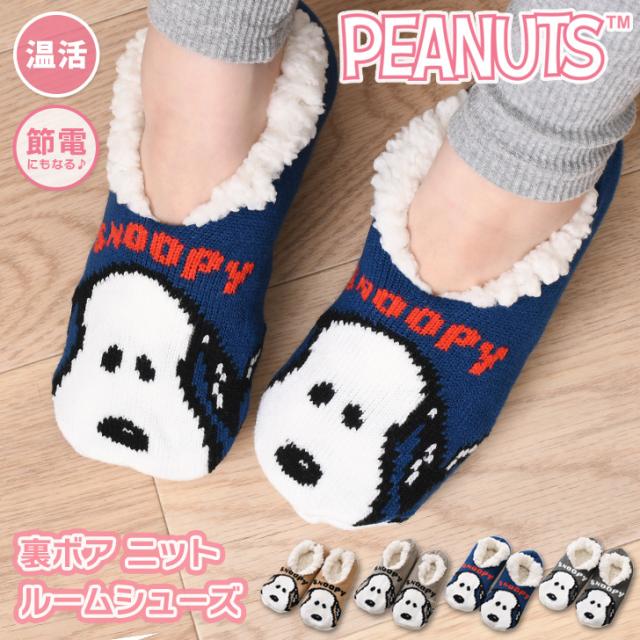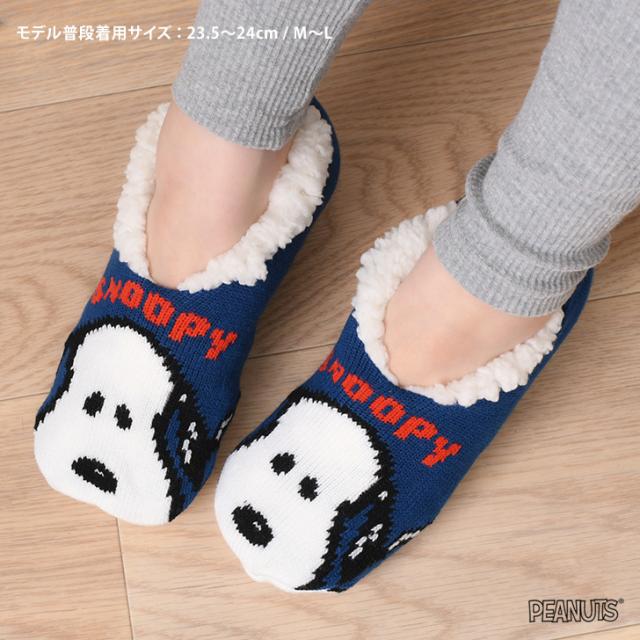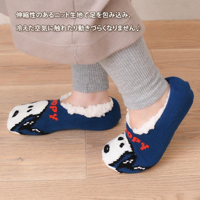 新作 スヌーピー★裏ボアニットルームシューズ レディース 室内 スリッパ 靴下 もこもこ ふわふわ 冬 かかと付き 暖かい 防寒 あったか 滑り止め かわいい 軽量 裏起毛 SNOOPY キャラクター おしゃれ
