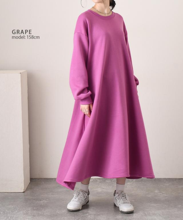 新作 ポケット付き裏起毛スウェットAラインロングワンピース レディース 秋 冬 長袖 極暖 防寒 暖かい あったか 大きいサイズ 大きめ 体型カバー フレア 膝下 カジュアル おしゃれ ゆったり スエット 部屋着