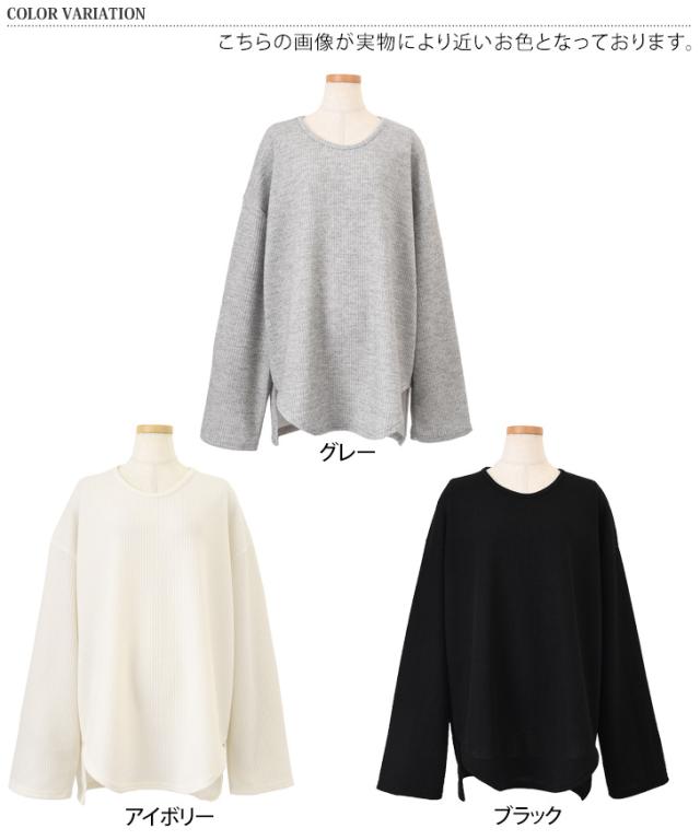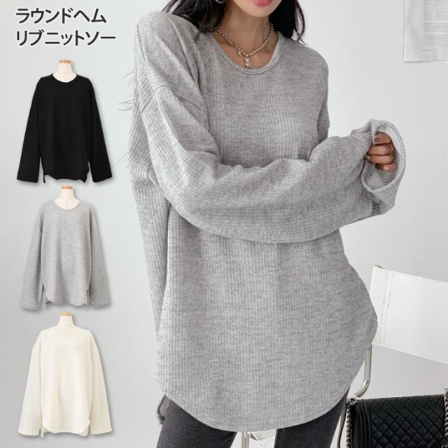 新作 オーバーサイズラウンドヘムリブニットソー レディース トップス 長袖 秋 春 ニット カットソー ロンT 大きいサイズ ゆったり 丸首 大きめ カジュアル 韓国ファッション ラフ 体型カバー デイリー 楽ちん