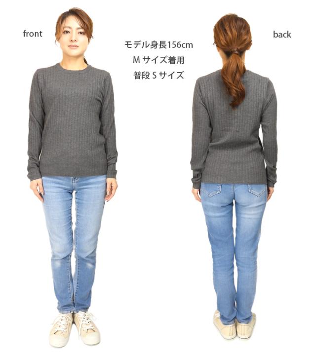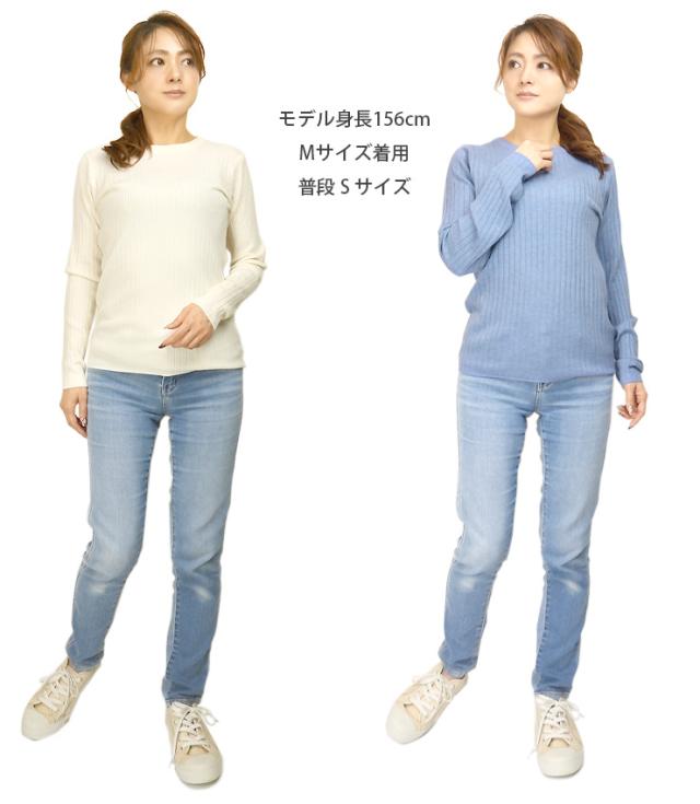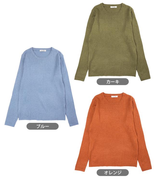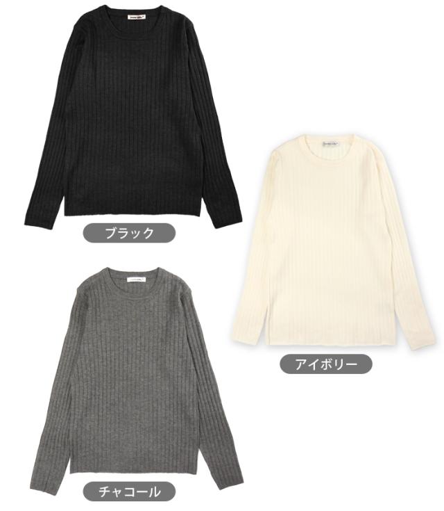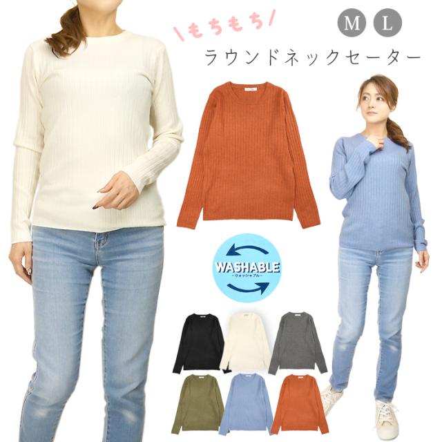【メール便送料無料】もちもち ラウンドネック ワイドリブニット セーター レディース M L 6色 長袖 秋冬 58423A ブラック アイボリー No.2723