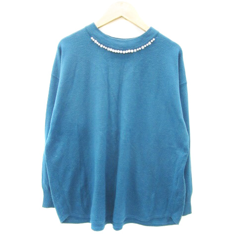 【中古】グローブ grove ニット カットソー 長袖 パールビーズ ビーズ M ブルーグリーン 青緑 /YM30 レディース