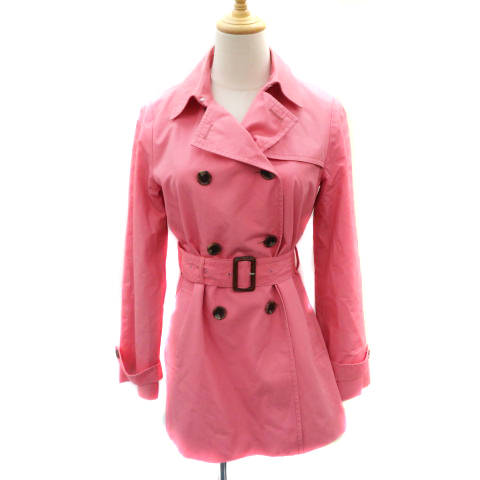 【中古】クミキョク 組曲 トレンチコート スプリングコート ショート丈 ウエストベルト付き 2 ピンク レディース