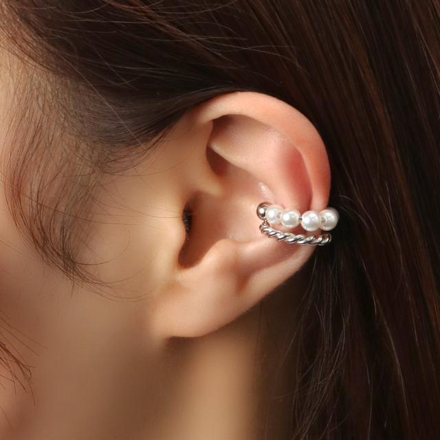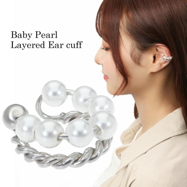 ベビーパールが光るレイヤード風デザインの上品イヤーカフ。