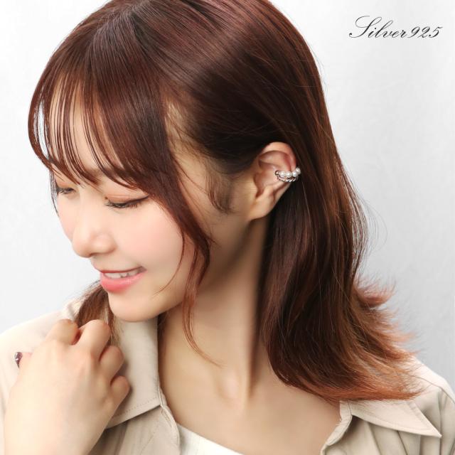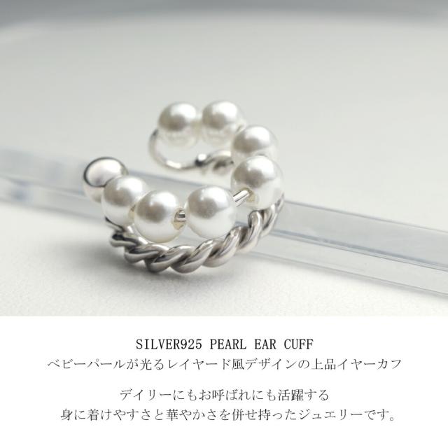 レイヤード風 ベビーパール ロープ イヤーカフ 1P 片耳用 シルバー レディースイヤーカフ 925 パール 真珠 重ね付け 重ね着け きれい 上品 大人