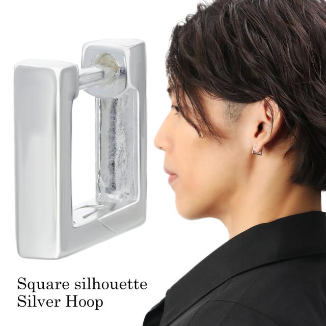 SILVER925 SQUARE SILHOUETTE HOOP PIERCE