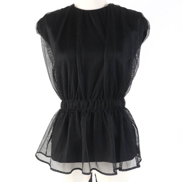 極美品☆MONCLER モンクレール ロゴ刺繍入り メッシュ レイヤード フレンチスリーブ カットソー ブラック S 伊製 正規品 レディース