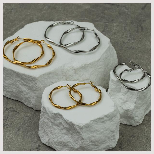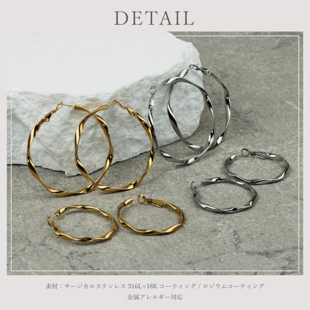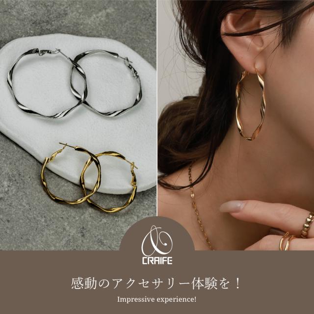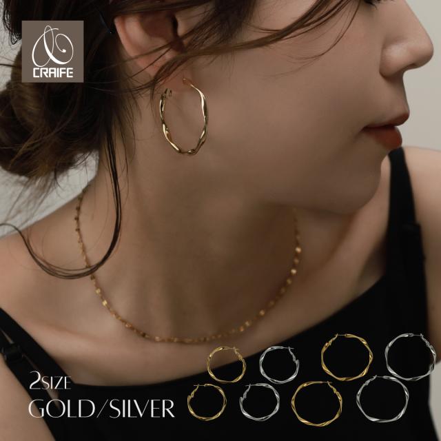 ピアス ツイスト フープピアス 金属アレルギー対応 サージカルステンレス 18Kコーティング レディース 大人 モダン かわいい エレガント ジュエリー ゴールド シルバー 2サイズ 送料無料 プチプライス高見え CRAIFE