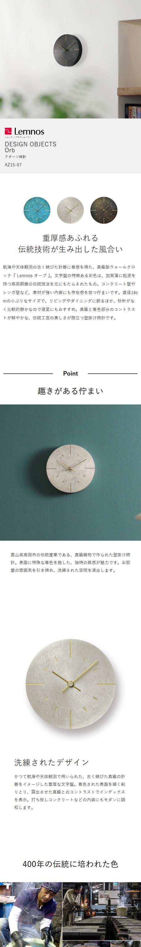 [ Lemnos Orb ]レムノス おしゃれ オシャレ お洒落 壁掛け 時計 掛け時計 掛時計 ウォールクロック 18cm 安積伸 真鍮 モダン シンプル スタイリッシュ 見やすい 秒針なし タカタレムノス AZ15-07