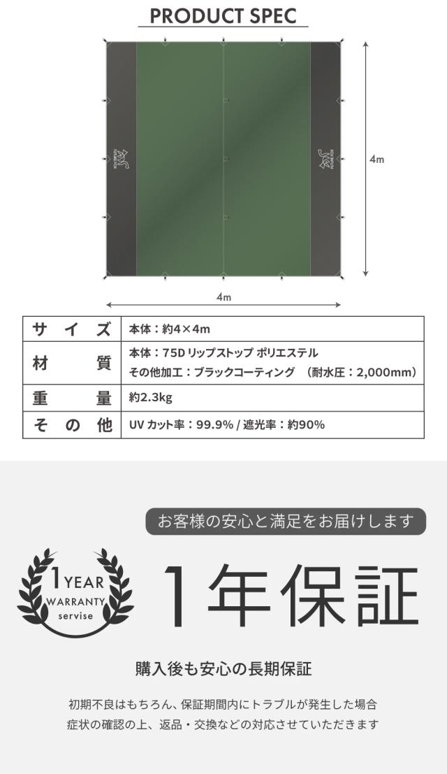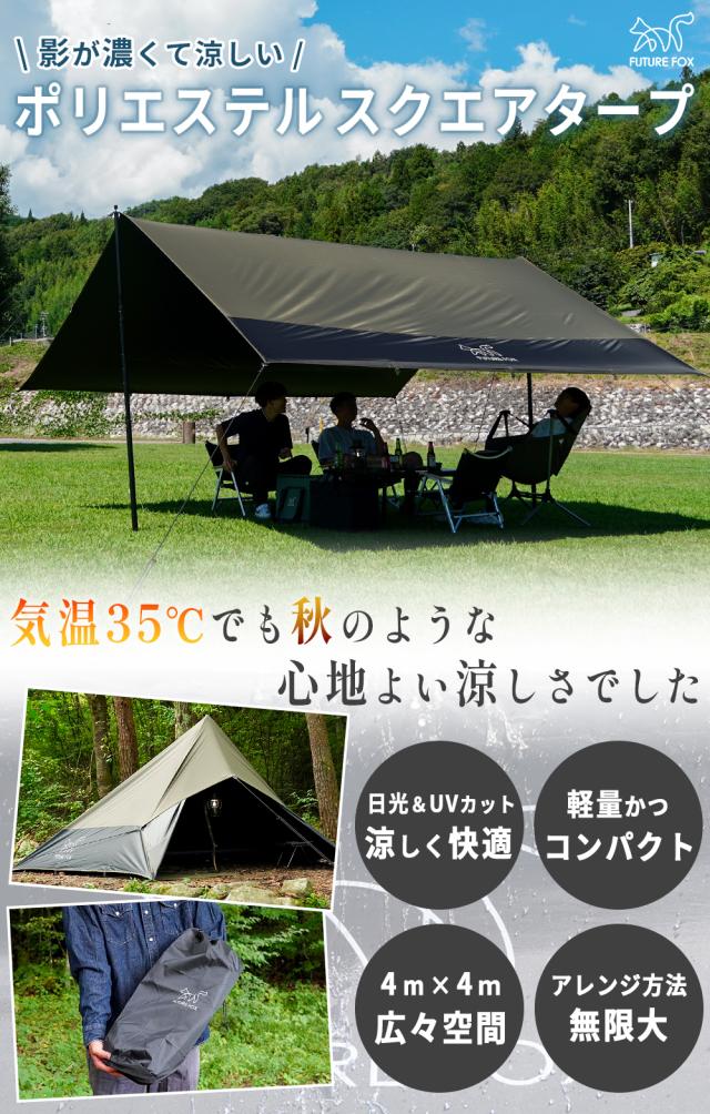 FUTURE FOX ポリエステル スクエアタープ 4m×4m ブラックコーティング 遮光率90% UPF50+