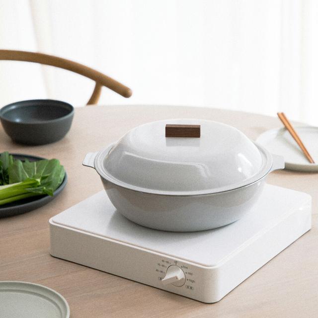 におい移りがしにくい、琺瑯製のかこみ鍋。 コンパクトで扱いやすい琺瑯製のかこみ鍋。