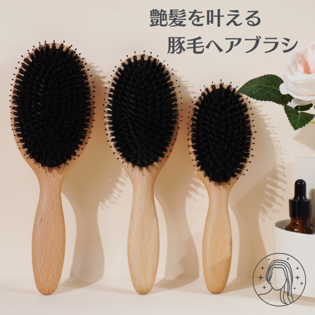 パドルブラシ ヘアブラシ 豚毛 ヘッドスパ ブラシ くし マッサージ 頭皮 櫛 髪 静電気防止 レディース 天然素材 母の日 プレゼント 女性 艶髪 木製 ツヤ