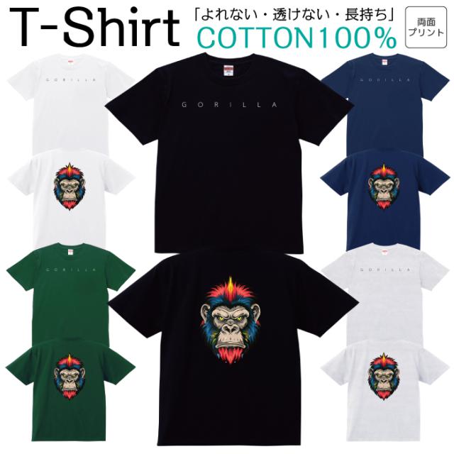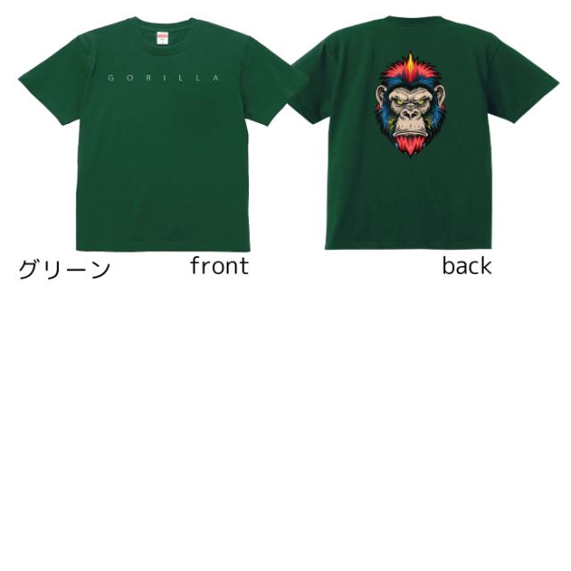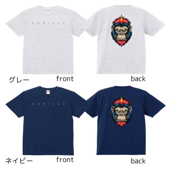 Tシャツ メンズ レディース ゴリラ パンク 動物 アニマル ジュニア キッズ 半袖 コットン100% 綿100% 100サイズ 120サイズ XXS XS S M L XL 5.6オンス zakka043-0342