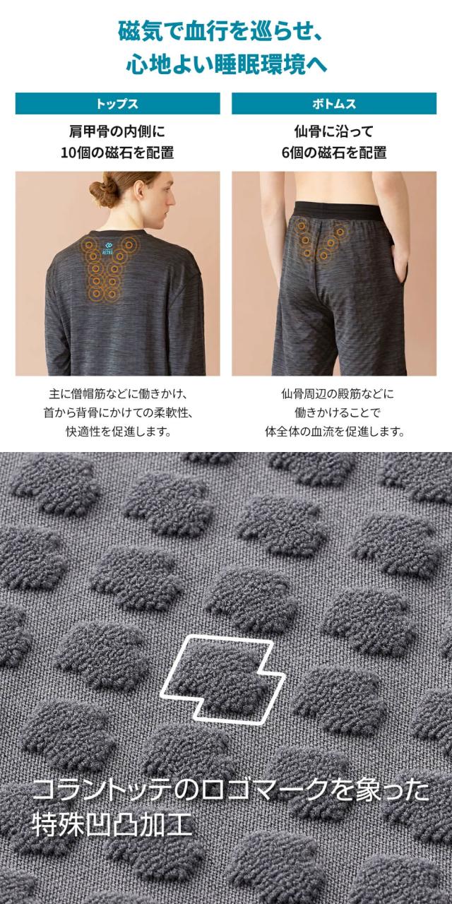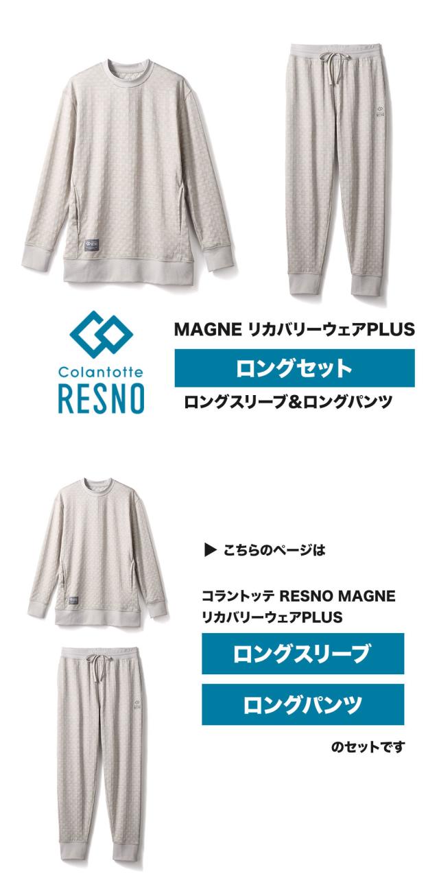 着るだけ、寝るだけ、朝まで快適 磁気で血行促進しながら、心地よい睡眠を コラントッテ リカバリーウェアPLUS 上下ロング2枚セット