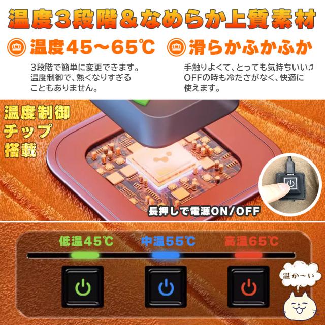 クイックヒーティング-非常に暖かく、10秒で急速加熱&自動一定温度の設計。バッテリーの消耗や誤差動を防ぐため、使用していない時はプラグを抜くことをおすすめします。