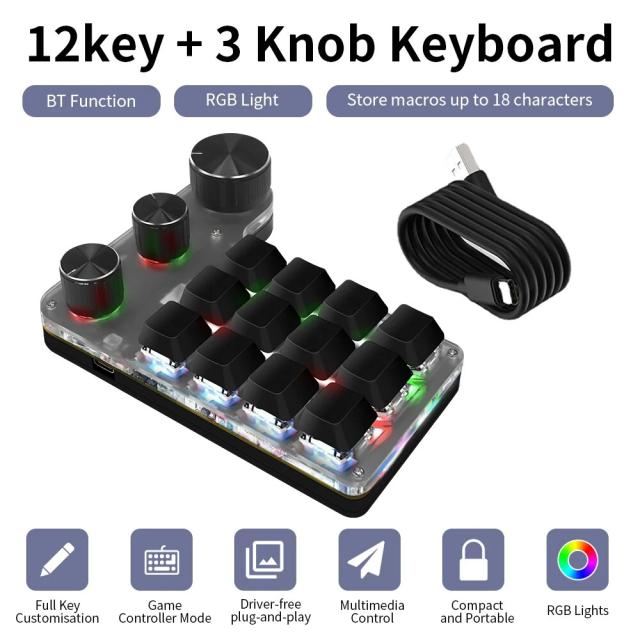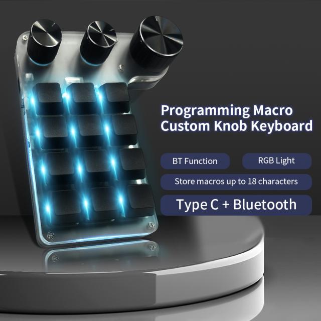 Bluetoothプログラミングマクロカスタムキーボード、rgbキーボード、12キーコピーペースト、ゲームキーパッド、機械式ホットスワッシングパッド、3ノブ