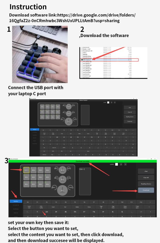 1.この制品は、使用する前にプログラミングが必要なカスタムマクロキーボードです。それを使用する前に私達のソフトウェアをダウンロードしたことを確かめて下さい。