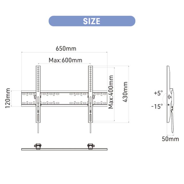 [金具奥行]50mm (金具設置壁面〜ディスプレイ背面までの距離)