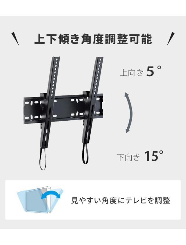 【値下げ】壁掛けテレビ 金具 TV 角度調整 上下 前後傾チルト 26~55V 薄型 耐荷重35kg 水平器付き 壁掛け金具 紐ロック式