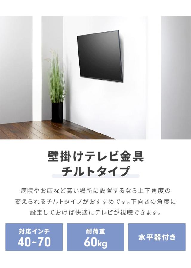 【値下げ】壁掛けテレビ 金具 TV 角度調整 上下 前後傾チルト 40~70V 大型対応 耐荷重60kg 水平器付き 壁掛け金具 紐ロック式