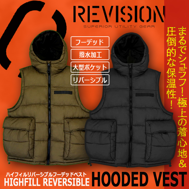 REVISION リビジョン アウトドア タウンベスト シュラフ 中綿 (REVISION リビジョン ハイフィルリバーシブルフーデッドベスト)