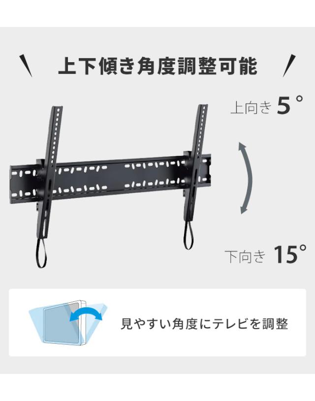 【値下げ】壁掛けテレビ 金具 TV 角度調整 上下 前後傾チルト 60~86V 大型対応 耐荷重60kg 水平器付き 壁掛け金具 紐ロック式