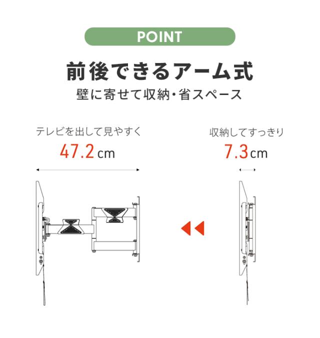 [金具奥行]73〜472mm (金具設置壁面〜ディスプレイ背面までの距離)