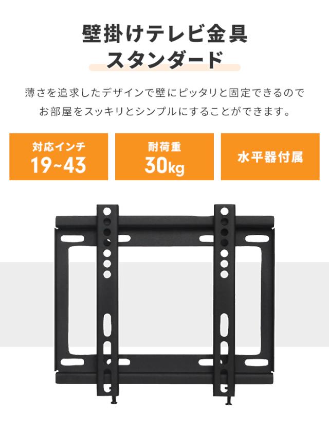 【値下げ】テレビ 壁掛け 金具 薄型 19〜43V 固定式 水平器付き 壁掛けテレビ 耐荷重30kg ネジ止め固定 垂直設置 壁掛け金具