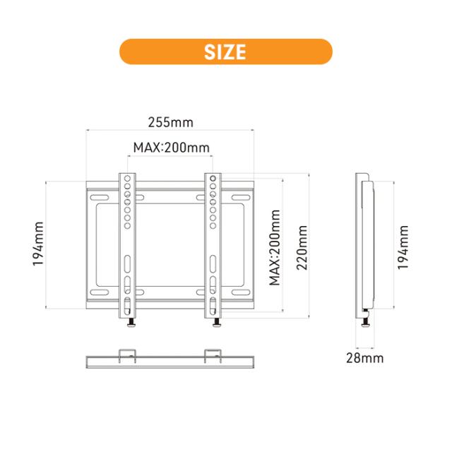 [金具奥行]28mm (金具設置壁面〜ディスプレイ背面までの距離)