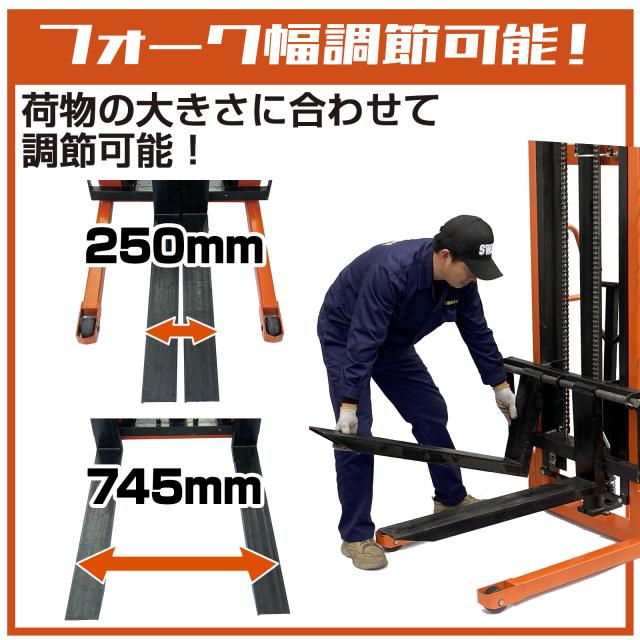 荷物の大きさに合わせて調節可能なフォーク幅。