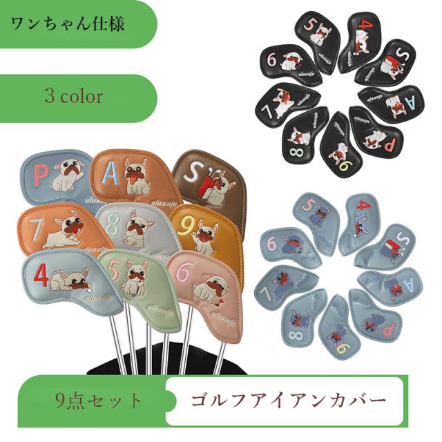 ゴルフアイアンカバー アイアンカバー 9点セット ゴルフウッドカバー ワンちゃん仕様 ヘッドカバー 防水 高級PU素材 ゴルフカバー ゴルフ用品 番手付き 保護