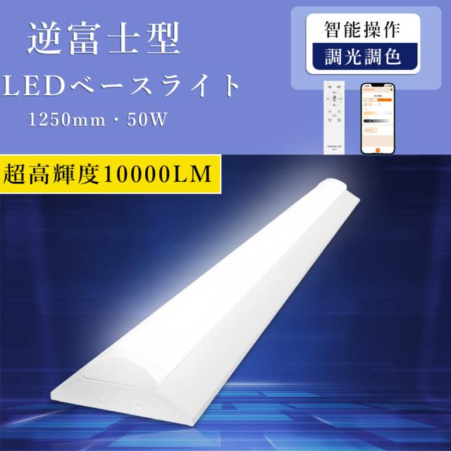 led蛍光灯 40形 リモコン付き 逆富士型 ledベースライト 調光調色 50W 10000lm 高輝度 ベースライト?40w形 2灯相当 器具一体型led蛍光灯 照明器具 天井照明 事務所 家庭用 工場照明 長寿命 節電 高演色性RA85以上 蛍光灯 常夜灯 スマート照明 タイマー付きライト スマホ