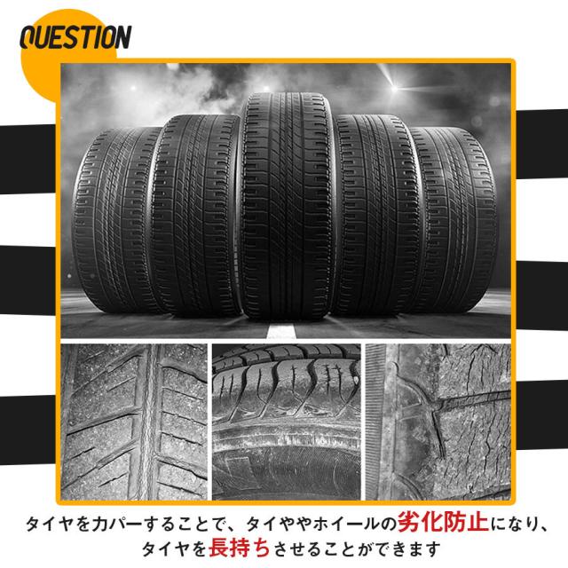 タイヤが長持ちするタイヤカバーです!スポッと簡単に4本まとめて保護できます。タイヤの寿命を10倍へ!